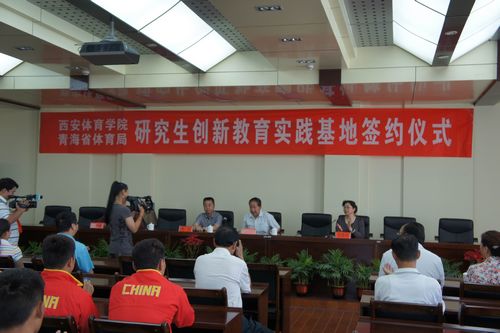 为更好体现科学研究在竞技体育和全民健身中的作用,充分发挥我院和青海省体育局双方优势,不断提高研究生创新实践能力,近日,我院与青海省体育局在西宁多巴国家训练基地举行了研究生创新教育实践基地签约与揭牌仪式。青海省体育局副局长郭玉京、我院周里副院长、研究生部及体育经济与体育管理系负责人、国家训练基地运动员100余人参加签约与揭牌仪式。仪式由青海省体育局体育科学研究所所长马福海研究员主持,青海电视台全程予以报导。