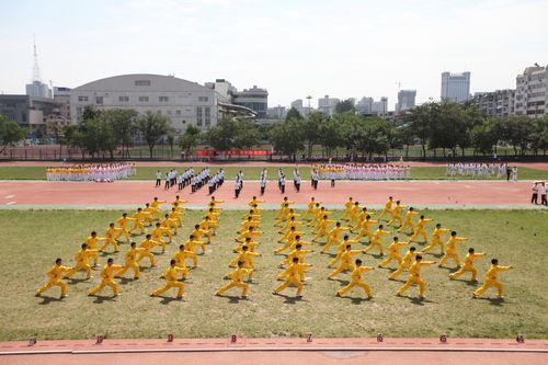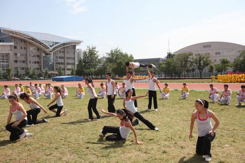 汇操表演由舞动青春、中华精神、放飞理想三个篇章组成,经过广大师生精妙的组合排练,以精湛的演技、准确的动作充分展示了体育教育系学生院内实习所取得的成绩,也展现了他们飞扬的个性与青春的活力。同学们精彩的展示和表演,博得了观众热烈的掌声,赛场气氛高潮迭起。