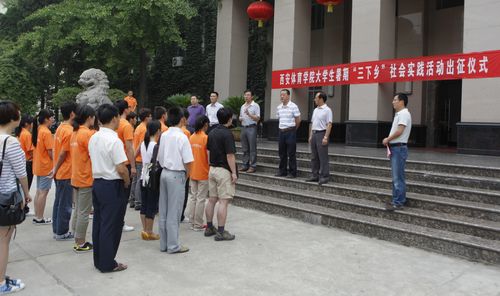 本次“三下乡”实践队伍由“全民健身”服务队、“农民体育健身工程”调研团、“民族民间体育促进社会主义新农村文化建设”服务队、“追寻红色足迹”服务队组成,各服务队以指导带领当地群众开展全民健身活动、考察当地农村和乡镇群众全民健身的开展情况、调查当地体育教师教学训练情况为活动主要内容,同时学院也希望服务队走进延安,了解延安,感受延安精神,接受革命传统教育。