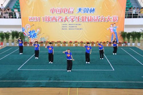 6月11至12日,由陕西省学生体育协会主办的“2011年陕西省大学生健康活力大赛”在西安邮电学院体育馆隆重举行。我院体育艺术系健美操教研室教师时倩、樊超和王猛带队参加了花球啦啦操、竞技健美操、健身健美操等项目的比赛;体育艺术表演教研室教师闫晓、刘进、吕默带队参加了其中全健排舞、街舞啦啦操及街舞项目的比赛。经过两天紧张激烈的预、决赛,最终,我院健美操教研室编排的健身健美操获自编第一名、第三套大众锻炼标准四级第一名、花球啦啦操规定套路第一名、技巧啦啦操自编第二名,竞技健美操女子单人操第一名、男子单人操第一名、三人操第一名、混双第一名、六人操第二名的喜人成绩。体育艺术表演教研室编排的全健排舞、街舞啦啦操分获体育院校组第一名,街舞的两支队伍分获自选套路第二和第三名。