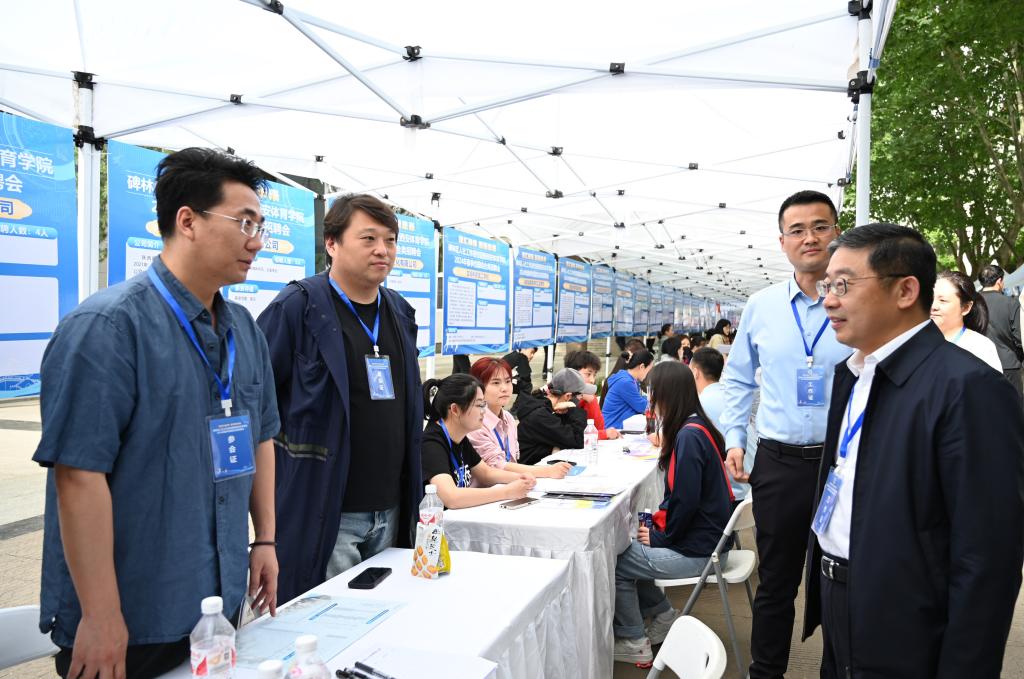 本网讯    为助力我校毕业生高质量就业,4月20日碑林区人社工作进校园暨久久不卡区2024年春季校园综合类招聘会在含光校区教学楼前顺利举行。校党委书记刘子实,校长李富生,副校长张卫国到现场调研。