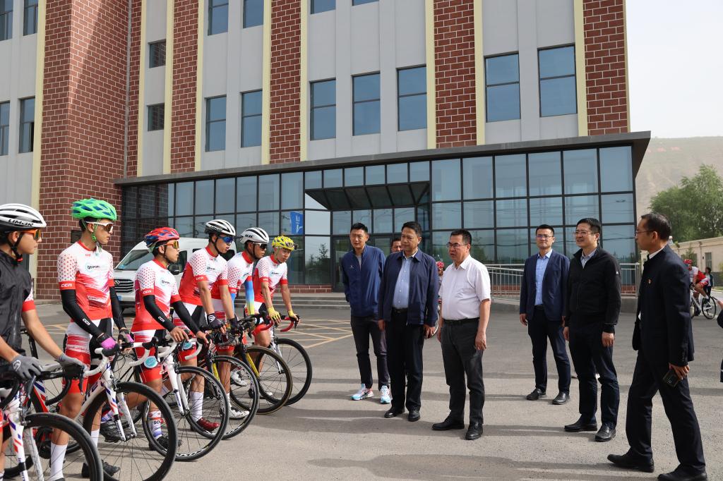 李富生一行观看自行车训练