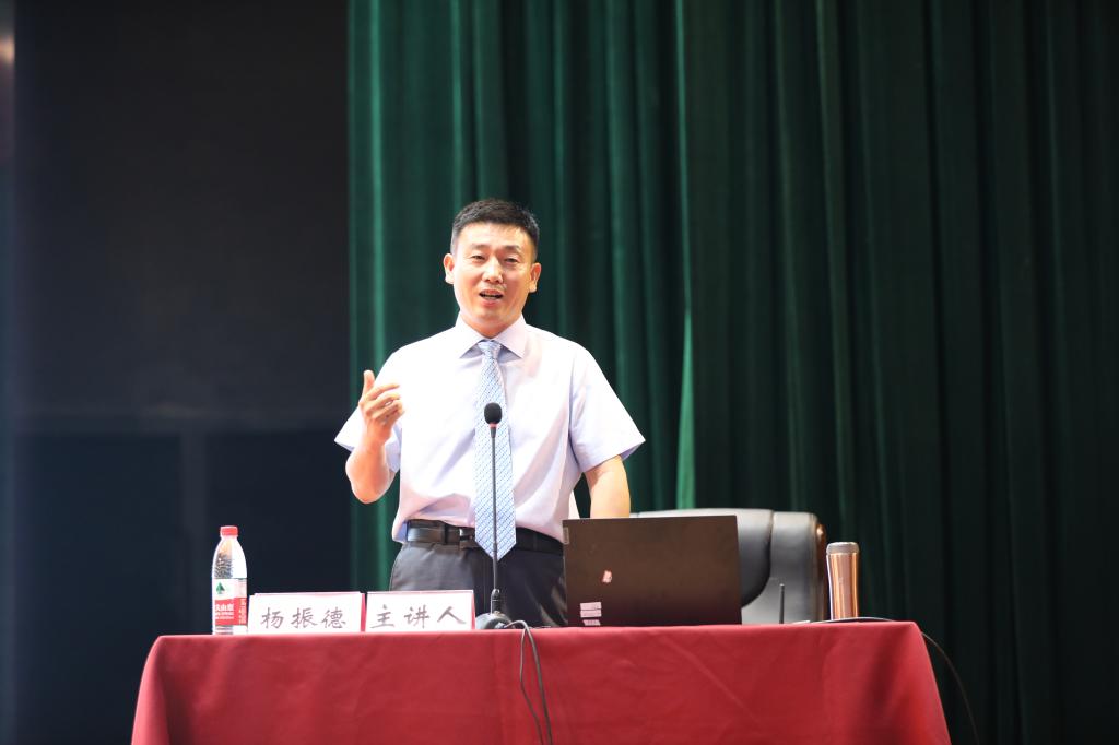 本网讯    6月12日晚,我校在艺术馆大礼堂举行第三场杰出校友励志教育报告会。此次邀请我校95级杰出校友、全国十佳“以体树人”校长、陕西省西咸新区沣西实验学校教育集团总校长杨振德为师生作《人人是才,个个精彩,让才华和能力在探索与前行中生辉》精彩报告。党委书记刘子实,党委副书记、纪委书记、监察专员杨芳乾,党委副书记张卫国、副校长谢英出席报告会,报告由校长李富生主持。师生代表、处科级干部等1000余人到场聆听。