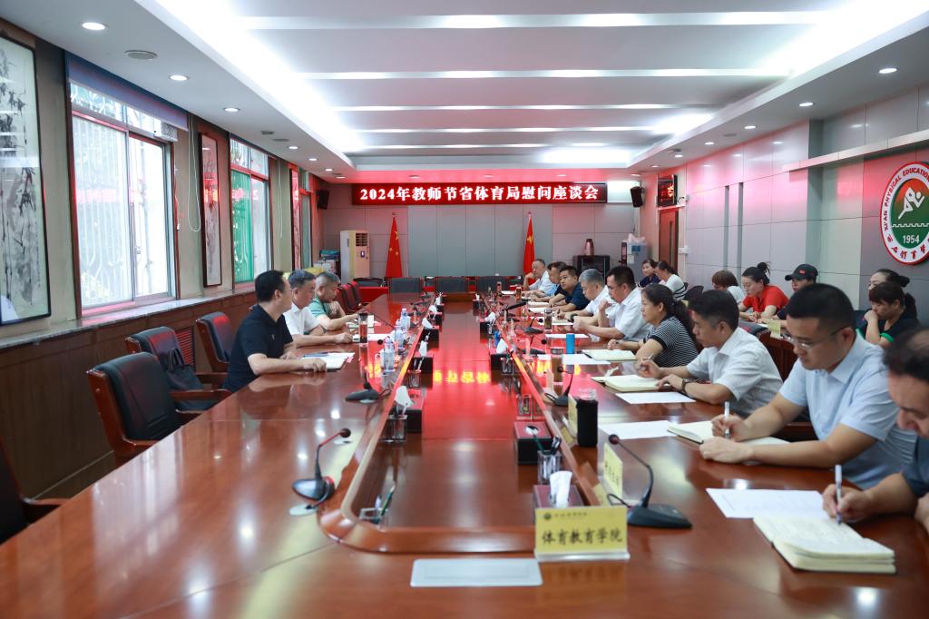 9月10日下午,陕西省体育局二级巡视员苏晓刚、省体育局科教处处长廖卫国、省体育局青少处处长张冰来我校进行教师节慰问,召开座谈会并宣读省体育局慰问信。校长李富生、副校长谢英、副校长张葆欣出席座谈,相关职能部门、教师教练员代表参加座谈。