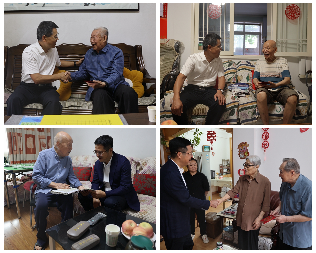 校领导对长期以来为学校发展和建设作出贡献的老干部、老党员们致以崇高的敬意和节日的问候,细心询问了他们的健康状况和日常生活情况,向他们介绍了学校近年改革发展成效,感谢他们为学校建设发展做出的贡献,并叮嘱老同志们保重身体、健康生活。校领导对随行的组织部和离退休工作处工作人员强调,老干部老党员是党和国家的宝贵财富,今后要继续发扬尊老、敬老、爱老、护老的光荣传统,多倾听老同志的心声,多为他们办实事好事,让大家安享晚年幸福生活。