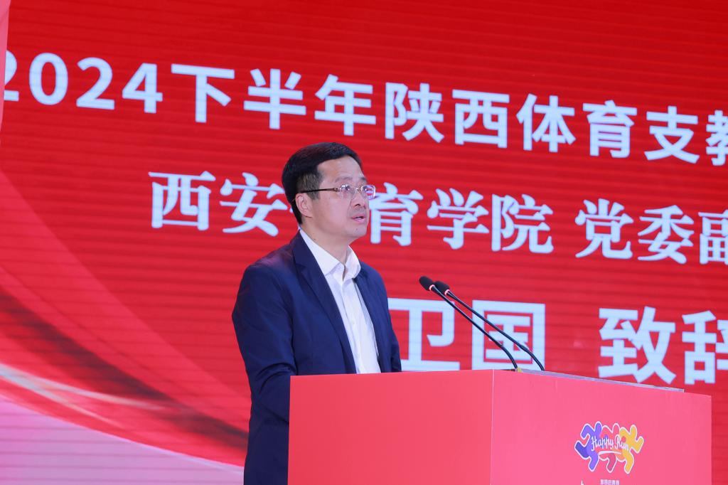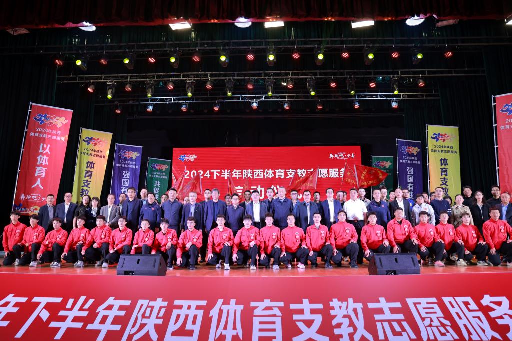 本网讯    10月13日上午,2024年下半年陕西省体育支教志愿服务启动仪式在我校艺术馆大礼堂举行。省体育局党组成员、副局长邹军,省教工委委员、省教育厅副厅长吴振磊,共青团省委副书记惠旋,我校校长李富生、党委副书记张卫国出席并共同启动2024年下半年陕西省体育支教志愿服务活动。由我校牵头来自全省8所高校的优秀体育支教志愿服务队员以及省体育局、教育厅、团省委机关负责同志,陕西体育支教派出8所高校领导,10个支教地市体育局领导、10个支教县区教育体育局领导共同参加启动仪式。