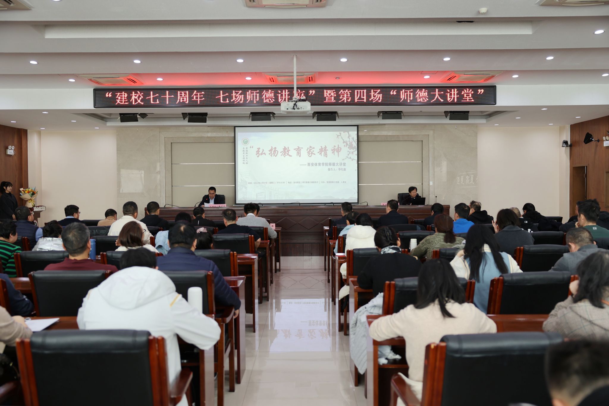 本网讯    11月27日下午,我校在含光校区2号行政楼报告厅举行建校70周年系列活动暨“弘扬教育家精神”师德大讲堂第四场报告会。邀请西安理工大学副校长、博士生导师华灯鑫作《教诲如春风,当好“引路人”——以黄大年精神构建三全育人新模式》专题报告,报告会由李富生校长主持,校党委副书记张卫国出席,党委校长办公室、人事处、教务处、科研处、研究生部、各二级学院、竞技体校等单位负责人和120名教师及辅导员代表到场聆听报告。