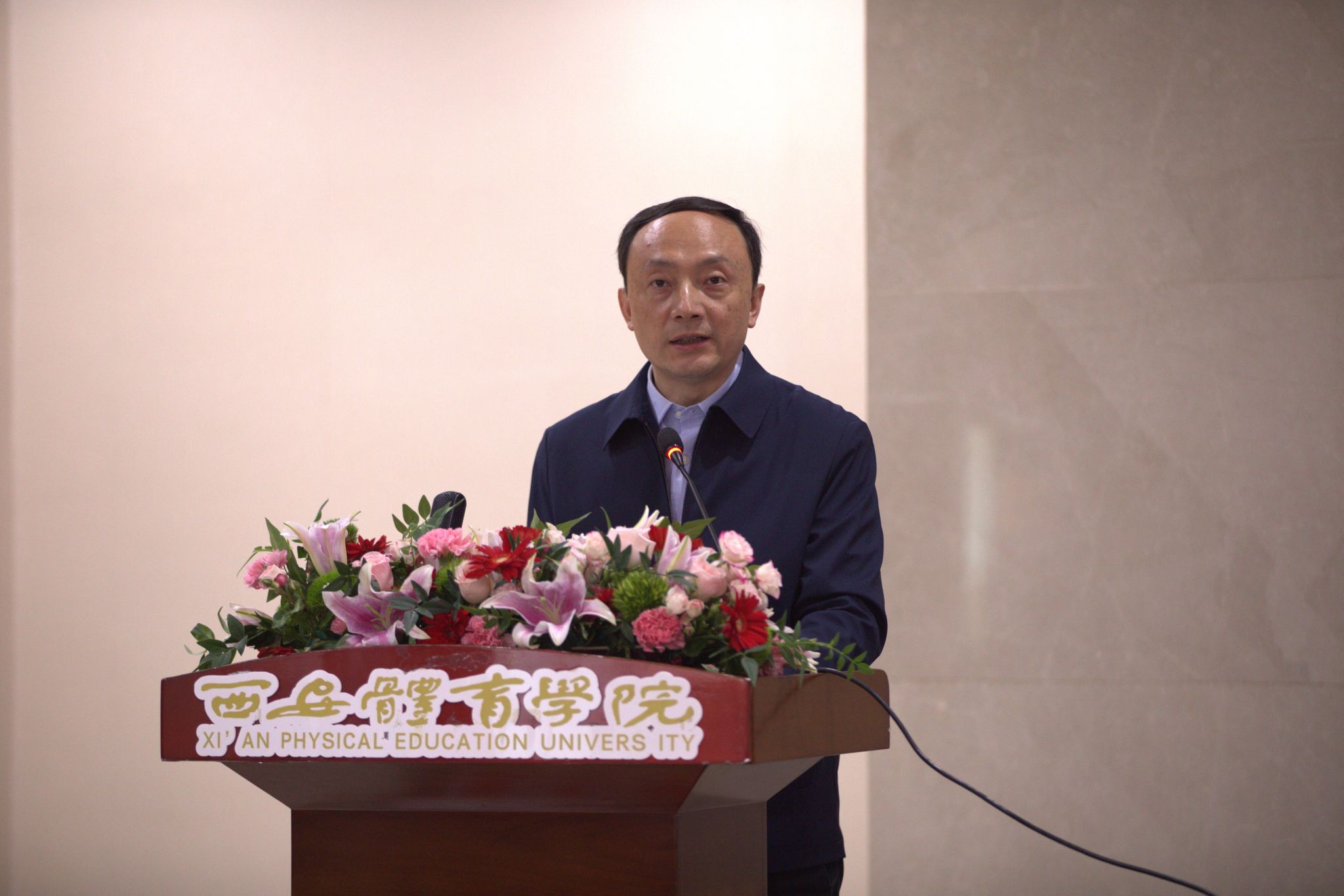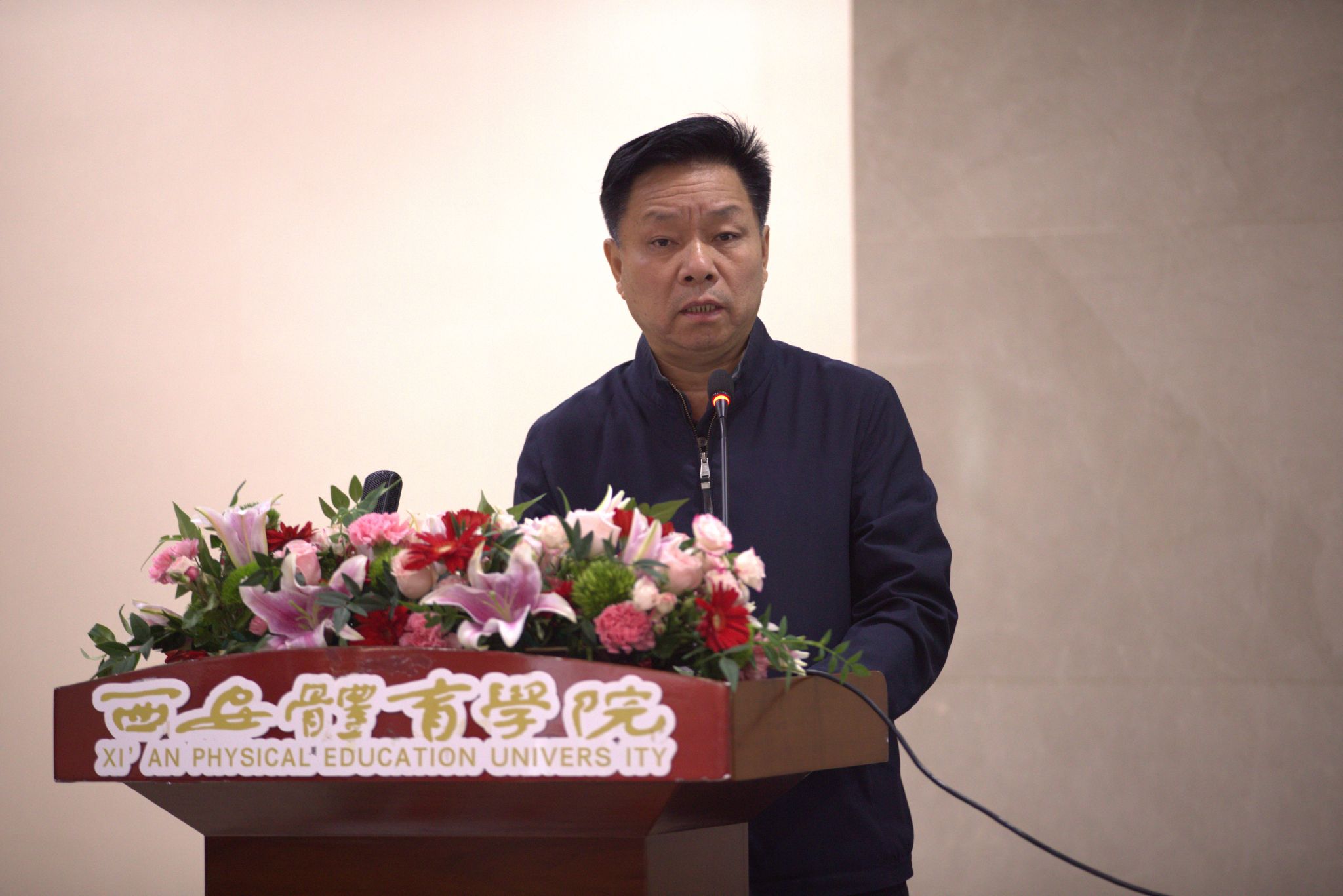 本网讯    11月30日,第六届陕西省运动与健康促进论坛暨陕西省第二届高校学生康复技能大赛在我校含光校区举办。陕西省体育局副局长徐鹏、我校党委副书记马海涛、陕西省体育局科教处副处长甄颖、陕西省体育科学研究所副所长于俊海、我校人事处处长刘涛等领导与嘉宾出席开幕式。开幕式由运动与健康科学学院院长刘军主持。