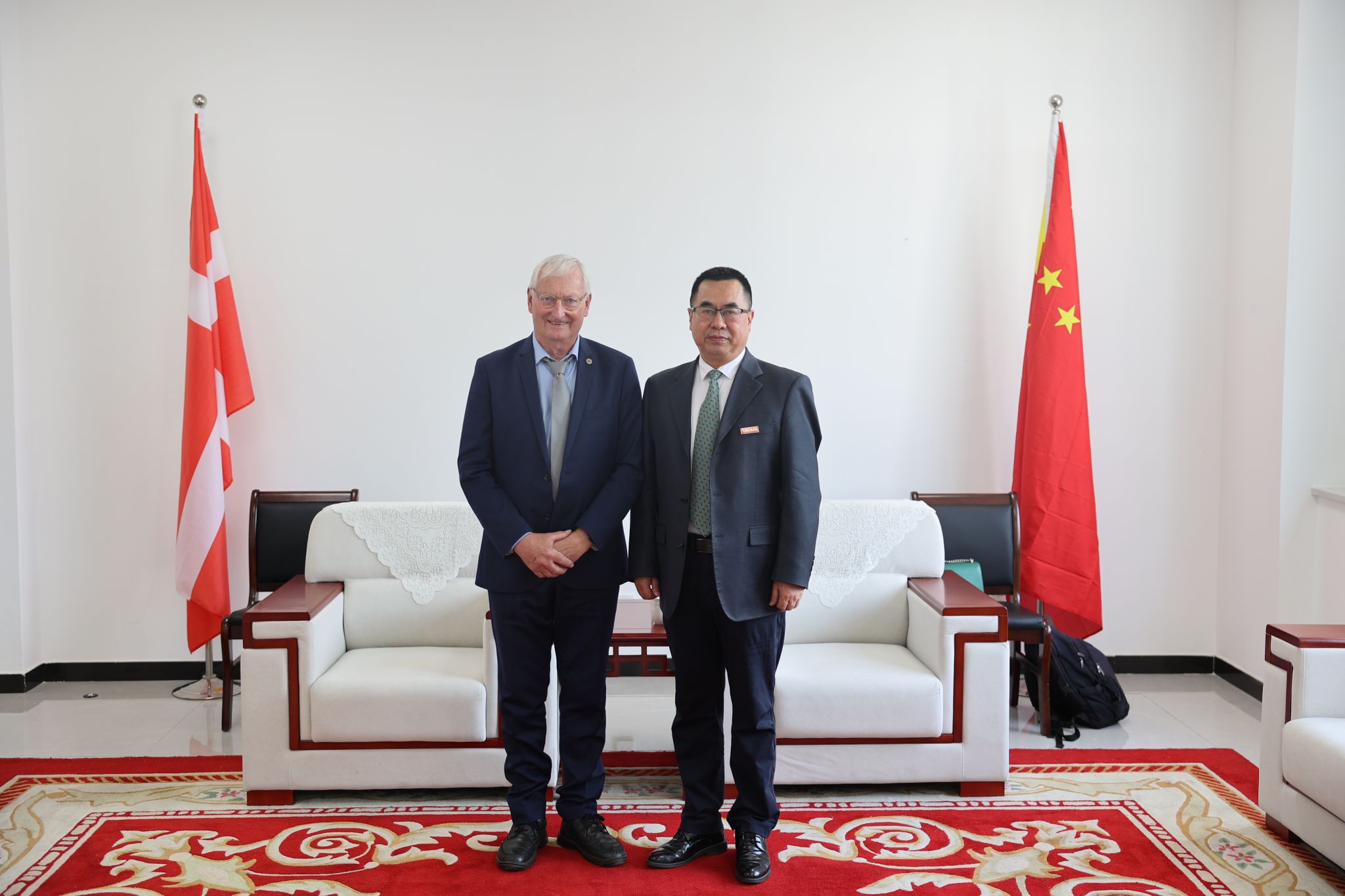 校长李富生会见费恩·伯根教授,代表学校表示热烈欢迎,并简要介绍了学校近年来在校区建设、人才培养、学科建设及国际交流合作领域的成果。伯根教授表示,在中丹建交75周年之际,重访久久不卡区深感荣幸,对学校日新月异的变化表示赞赏,希望双方以此次交流为契机,共同探索体育教育合作新模式。
