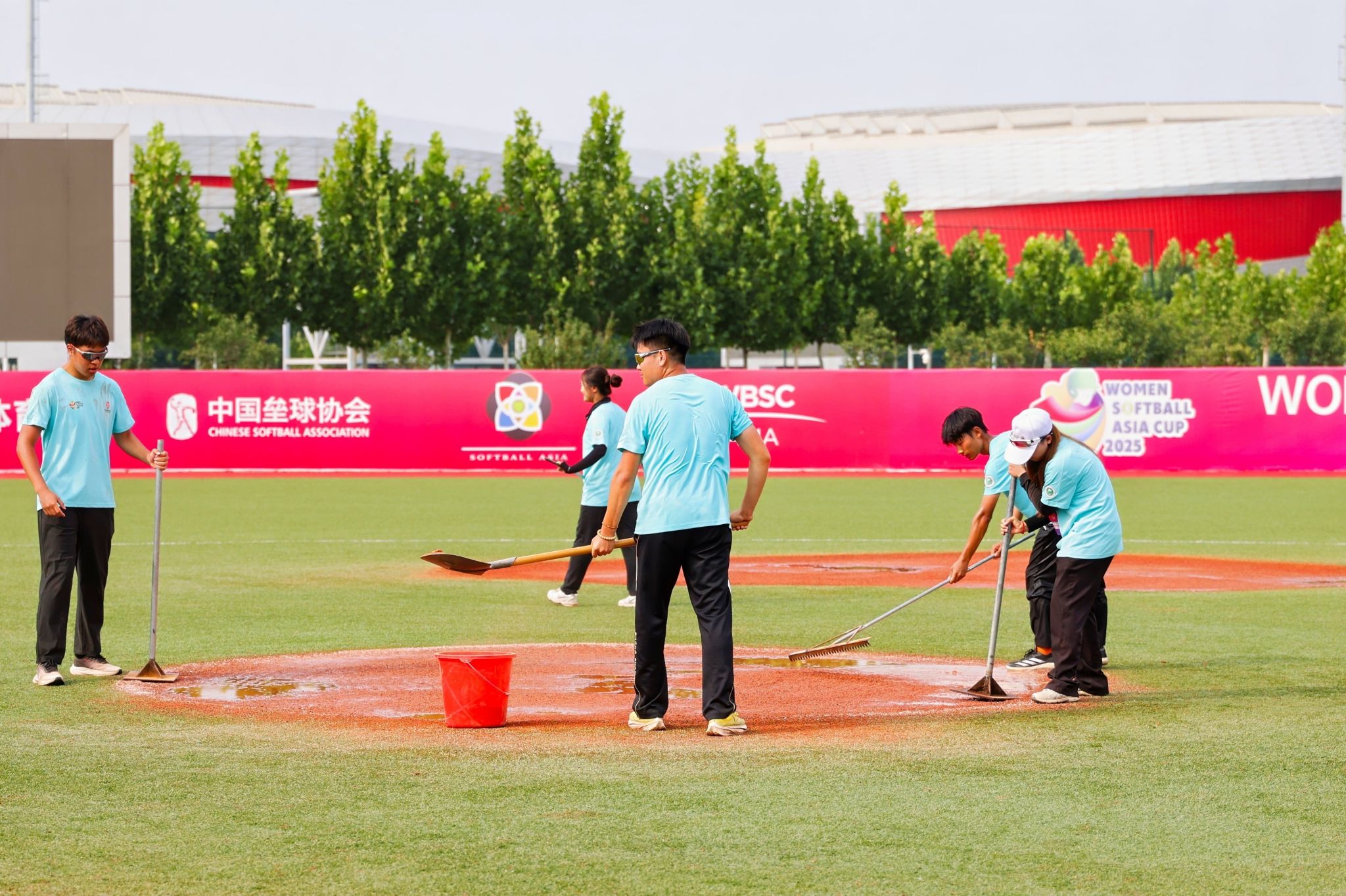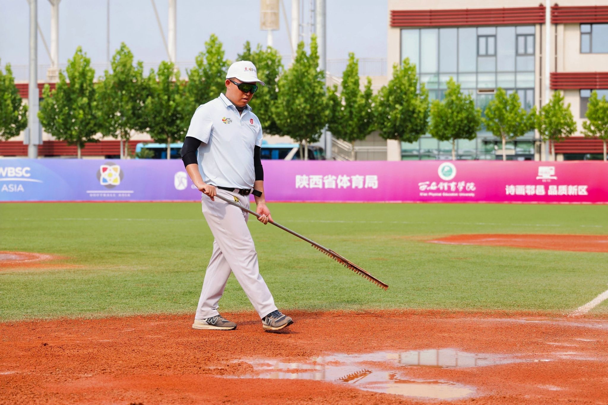 赛前物资配备、赛中场地维护、赛后收尾复盘,每个比赛日上午7时,李必凤会带着数十名志愿者早早来到赛场,为比赛做准备。由于天气炎热,原本在第4局结束后对场地的整修,调整至第3局和第5局之后。在仅有的2分钟时间里,大家要完成垒包清理、红土区平整、场地洒水、垒区标线划定等工作。“因为时间很短,需要大家协同配合好,才能尽量缩短维护时间,避免影响比赛进程,为选手创造更好的比赛条件。