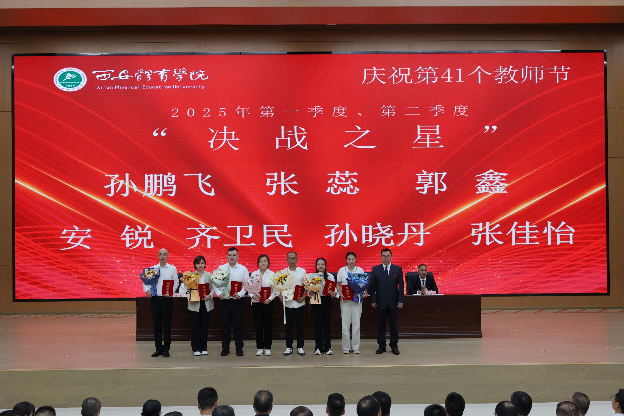 校长李富生指出,教师是学校发展的第一资源,此次表彰既是对广大教师辛勤付出的充分肯定,也是弘扬尊师重教优良传统的具体体现。近两年,学校制定实施“三年行动计划”,创新开展“三大战役”,办学理念日益清晰,硬件条件显著改善,综合改革全面推进,教学科研、竞赛训练、人才培养质量、文化影响力等方面持续突破,已加速迈入全国体育院校第一方阵。广大教师要坚定理想信念,涵养教育情怀,强化责任担当,争做“有情怀、有境界、有水平”的新时代大先生;要持续提升教书育人、科研创新与服务社会的能力,把个人奋斗融入学校发展与国家战略之中,以奋斗姿态接续发力、砥砺前行,为实现西体美好明天贡献智慧和力量。