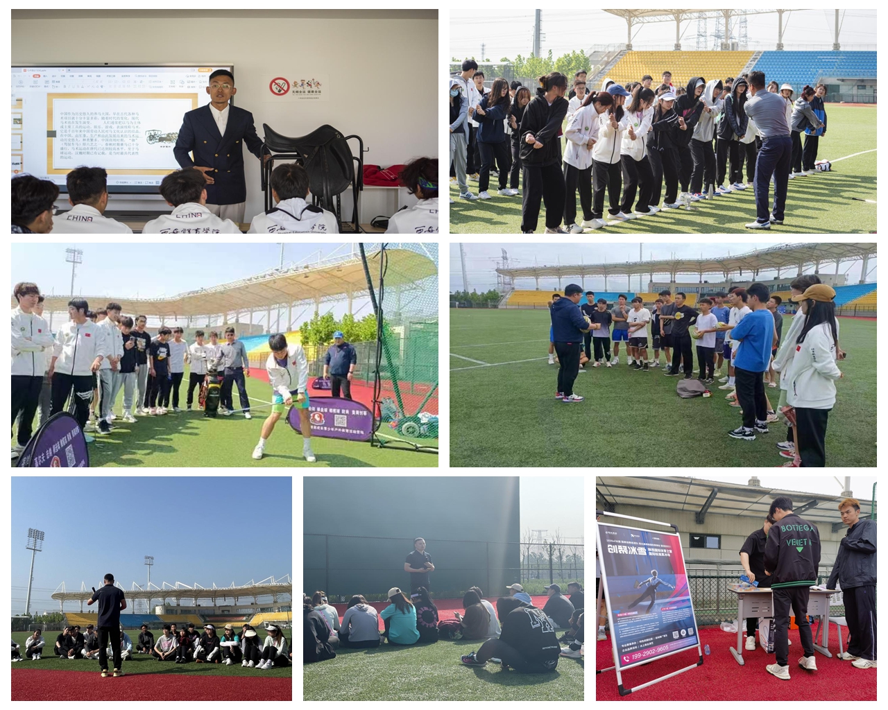 本网讯 为了进一步深化校企合作,促进新兴项目推广,拓宽学生专项技能,开拓学生眼界,日前,我院邀请陕西省手球曲棍球棒球垒球运动管理中心、陕西省现代五项协会,学院校企合作单位,在我校鄠邑校区为体育教育专业大一大二近900名学生开展了软式棒垒球、橄榄球、高尔夫、击剑、现代五项、马术、健身、冰雪项目等体育项目的推广与体验活动。