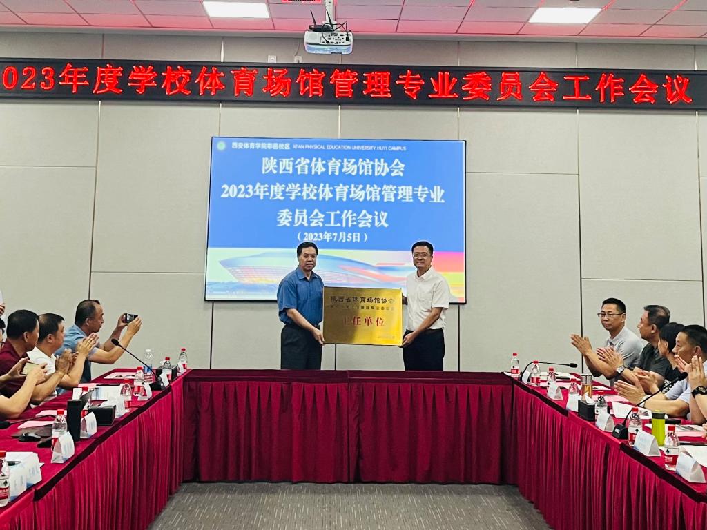 陕西省体育场馆协会副主席王波教授主持会议并宣布了我校担任陕西省体育场馆协会学校体育场馆专委会主任单位、鄠邑校区管委会主任朱军任专委会主任的通知。王德炜与张卫国共同为专委会主任单位揭牌。